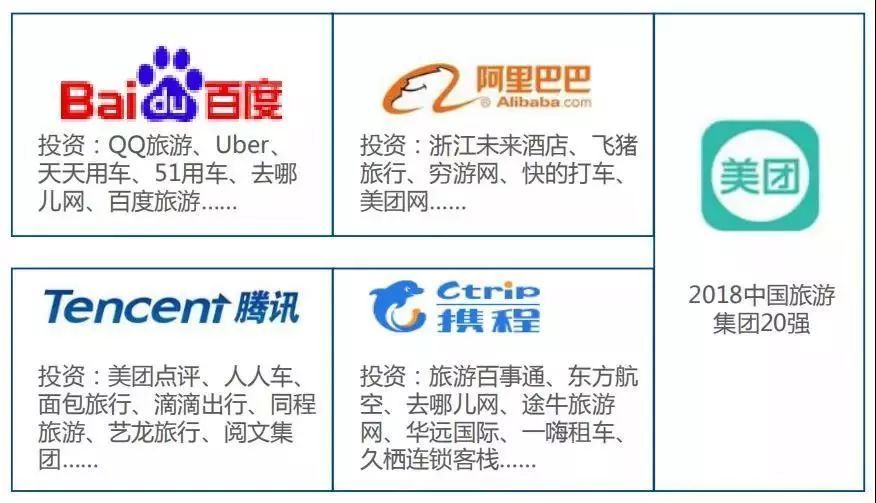 隨著互聯(lián)網(wǎng)的發(fā)展及消費(fèi)升級,無論是百度、阿里巴巴、騰訊等互聯(lián)網(wǎng)企業(yè),還是攜程等旅游企業(yè),均有投資覆蓋不同行業(yè)領(lǐng)域,助力延長產(chǎn)業(yè)鏈。