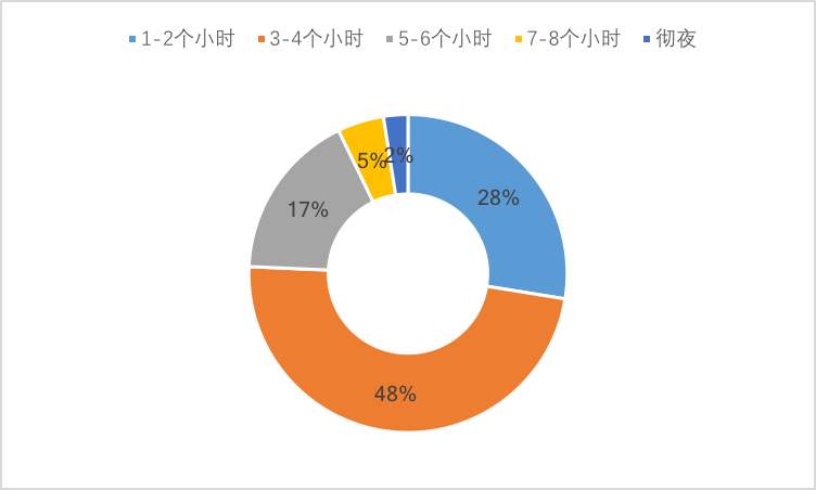 專項(xiàng)調(diào)查數(shù)據(jù)顯示,夜間6-10點(diǎn)為夜間旅游的高峰時(shí)段,占比達(dá)到77%;11-12點(diǎn)%及12點(diǎn)以后夜間旅游占比23%。從夜游體驗(yàn)時(shí)長(zhǎng)來(lái)看,愿意體驗(yàn)3-4小時(shí)的游客最多,占比為48.1%,體驗(yàn)1-2小時(shí)的比重為27.5%,體驗(yàn)5-6小時(shí)的比重為17.1%,體驗(yàn)7小時(shí)以上占比7.2%。