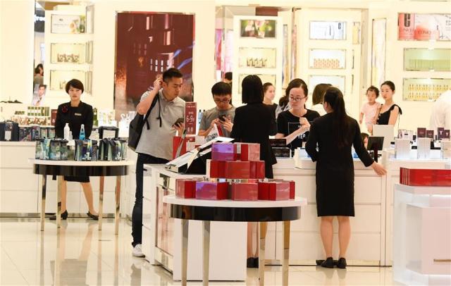 在海南省??谑袃?nèi)的免稅店,顧客在選購(gòu)商品(4月9日攝)。 新華社記者 楊冠宇 攝