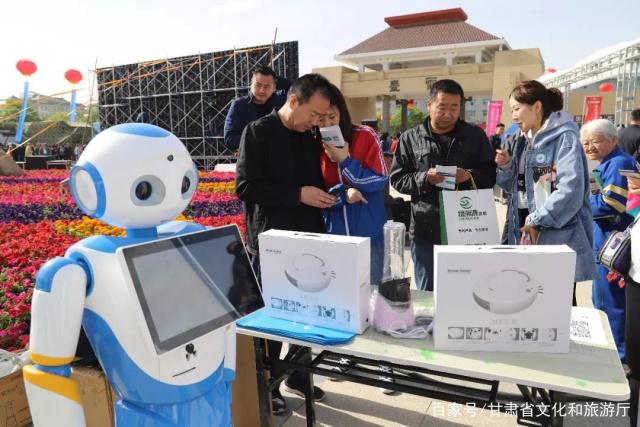 活動(dòng)現(xiàn)場(chǎng),省文旅廳的展覽區(qū)前人頭攢動(dòng)、氛圍熱烈火爆。代表甘肅文化旅游的兩臺(tái)智能機(jī)器人熱情地忙碌著,不斷和前來(lái)參觀的市民互動(dòng)交流,并播放一機(jī)游宣傳視頻,向大家講解甘肅各大景區(qū)的基本情況等等。
