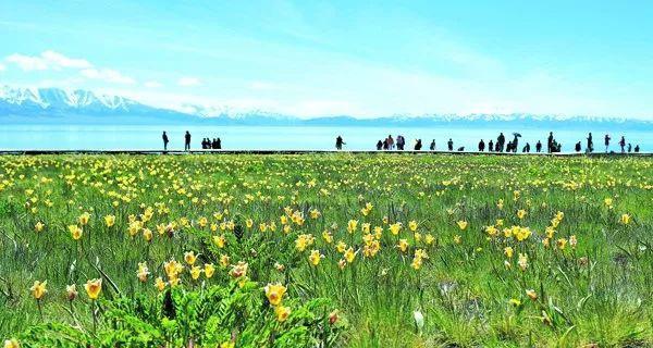 5月19日,游客在賽里木湖景區(qū)游玩。當(dāng)日是“中國旅游日”,賽里木湖景區(qū)實行門票半價優(yōu)惠。 □新疆日報記者湯永攝