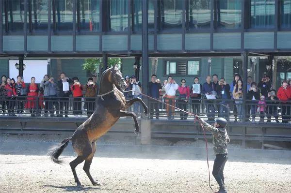 5月18日,游客在觀賞馴馬表演。當(dāng)日,2019年“中國旅游日”烏魯木齊分會場活動在新疆古生態(tài)園舉行。 □新疆日報記者韓亮攝