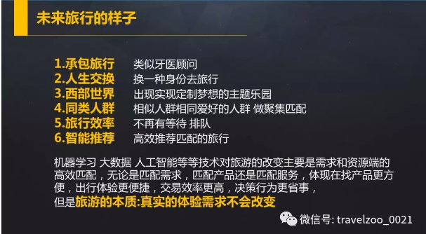 總結(jié)一下:無論未來技術(shù)多么強大,依然不會改變旅游的本質(zhì)——也就是基于每個人的真實的體驗需求。