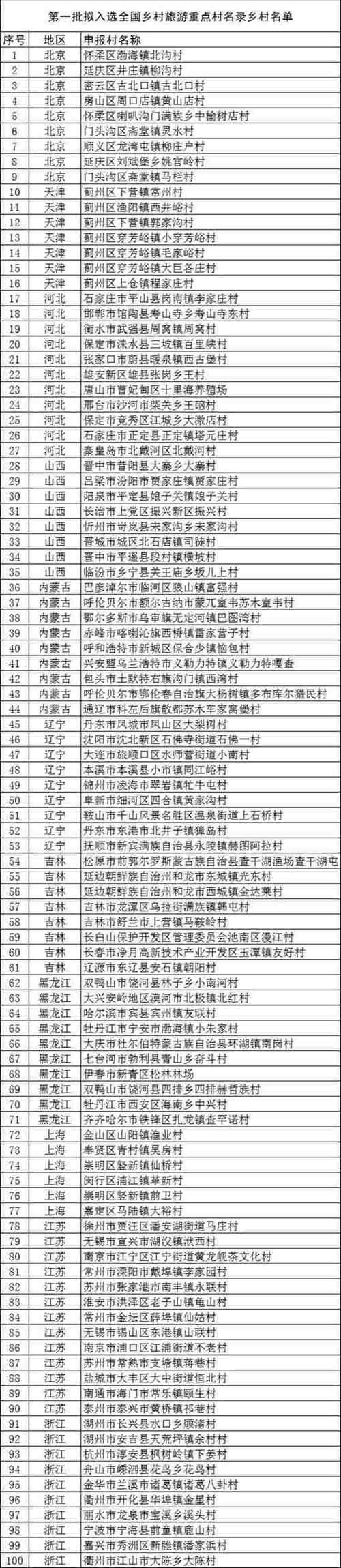 第一批全國鄉(xiāng)村旅游重點村名單:
