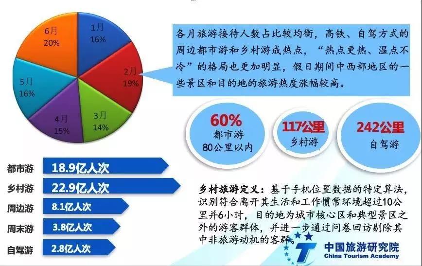 研究院和電信旅游數(shù)據(jù)聯(lián)合實驗室數(shù)據(jù)顯示,上半年各月旅游接待人數(shù)占比分別是16%、19%、15%、15%、16%、20%。全國范圍內(nèi)都市游和鄉(xiāng)村游的出游人數(shù)達到18.9、22.9億人次,周邊游、周末游、自駕游出游總?cè)藬?shù)分別達到8.1、3.8、2.8億人次。
