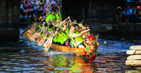 值得一提的是,在疊滘村,據(jù)當(dāng)?shù)卮迕窠榻B,“本地人不是以有一輛豪車為榮,而是以擁有一艘龍舟而自豪?!睗庥舻凝堉畚幕諊?,加上 “一鼓三轉(zhuǎn)彎”的驚險“龍舟飄移”,也吸引了眾多游客前往觀看。