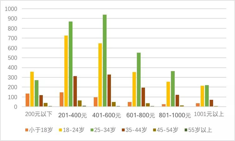 專項調(diào)查數(shù)據(jù)顯示,月收入水平在12000元以下的群體中選擇600元以下夜游花費(fèi)的比重最高,月收入在12000-15000元的群體選擇600-1000元夜游花費(fèi)的比重最高,月收入在15000元以上的夜游花費(fèi)更多高于1000元。