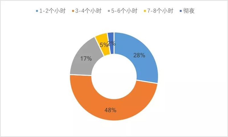 專項調(diào)查數(shù)據(jù)顯示,夜間6-10點為夜間旅游的高峰時段,占比達(dá)到77%;11-12點%及12點以后夜間旅游占比23%。從夜游體驗時長來看,愿意體驗3-4小時的游客最多,占比為48.1%,體驗1-2小時的比重為27.5%,體驗5-6小時的比重為17.1%,體驗7小時以上占比7.2%。