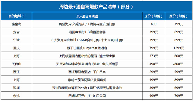 城市周邊旅游,儼然已經(jīng)成為現(xiàn)代人舒緩壓力的一個重要的方式。對于短期假期而言,本地周邊游是性價比較高的選擇;時至今日,周邊游雖然是從本地視角出發(fā),但為用戶提供的已經(jīng)不再是那些所有人都去過的甚至是人擠人的景點,而是本地城市周邊一些具有特色、不為人知的旅游目的地;相比常見的旅游體驗,周邊游提供的是整體打包出行方案,不再需要用戶再單獨單項行程進行搜索;