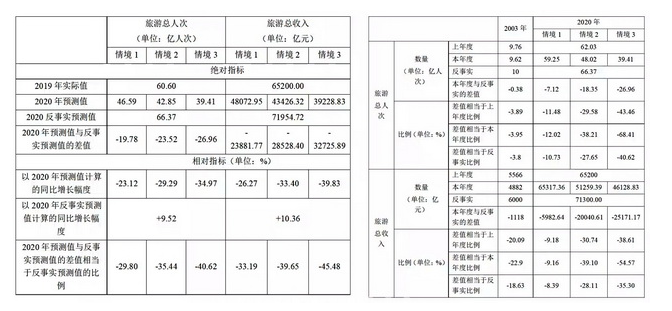 中國社會(huì)科學(xué)院旅游研究中心的研究顯示,在謹(jǐn)慎預(yù)測(cè)的情境下,2020年旅游總?cè)舜蔚念A(yù)測(cè)值為39.41億人次,比上年同期下降34.97%;旅游總收入的預(yù)測(cè)值為39228.83億元,比上年同期下降39.83%。疫情造成2020年旅游總?cè)舜蔚臐撛谙陆狄?guī)模為26.96億人次、下降比例為40.62%,造成旅游總收入的潛在損失為32725.89億元、損失比例為45.48%。