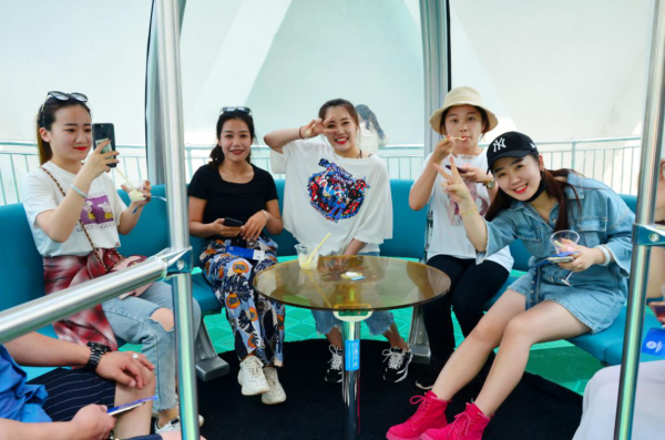 白浪河入???,水勢平緩,河面寬闊,“渤海之眼”摩天輪矗立在白浪河上,高145米,是世界上最高的無軸式摩天輪、世界上首例編織網(wǎng)格摩天輪、世界上首次無軸式輪橋合一摩天輪,自2018年運行以來,游人如織,已成為網(wǎng)紅打卡地?!拔覀兪菑亩兑羯峡吹剑_車過來到網(wǎng)紅地打卡,到了眼前覺得這摩天輪特別壯觀,乘坐感覺很好,挺寬敞、挺平穩(wěn)。”來自淄博的游客張先生激動地說?!安澈Q邸蹦μ燧?,登高望遠,俯瞰海河風光。86歲的老黨員單吉祿第一次在145米的摩天輪轎廂里俯瞰家鄉(xiāng),“濱海變化太大了,感覺真的很幸福?!?/p>