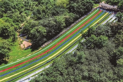 走進(jìn)青松嶺森林公園,記者看到這里各個(gè)景點(diǎn)的旅游項(xiàng)目齊全、設(shè)施完備,不少游客來到這里體驗(yàn)驚險(xiǎn)刺激的滑草,享受拉弓射箭百步穿楊的樂趣,還可以泡泡溫泉、住進(jìn)星空帳篷進(jìn)行夜宿體驗(yàn)游。這里已然成為度假網(wǎng)紅打卡地。