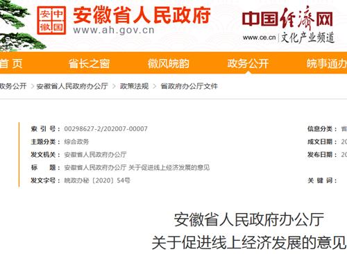 安徽省人民政府辦公廳關(guān)于促進線上經(jīng)濟發(fā)展的意見