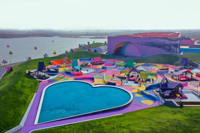 荷蘭花海景區(qū)內(nèi)的愛(ài)心水池。 荷蘭花海 圖