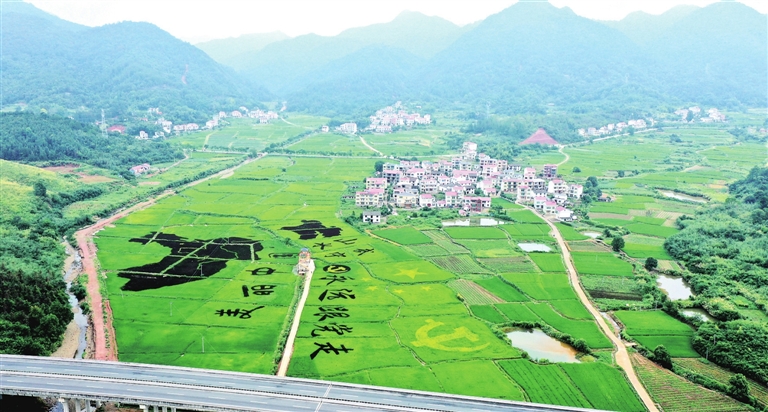 在九江市武寧縣宋溪鎮(zhèn)南皋村大屋場,1000余畝水田通過高標準農(nóng)田改造,種上“彩稻”建成生態(tài)農(nóng)旅項目。登上稻田中央的觀景臺,整片水田呈現(xiàn)出中國地圖、武寧地圖以及“山水武寧”“永遠跟黨走”等多種文字圖案,既有經(jīng)濟收益,又有觀賞價值。無數(shù)游客前來觀賞拍照,成了武寧旅游的新熱地……
