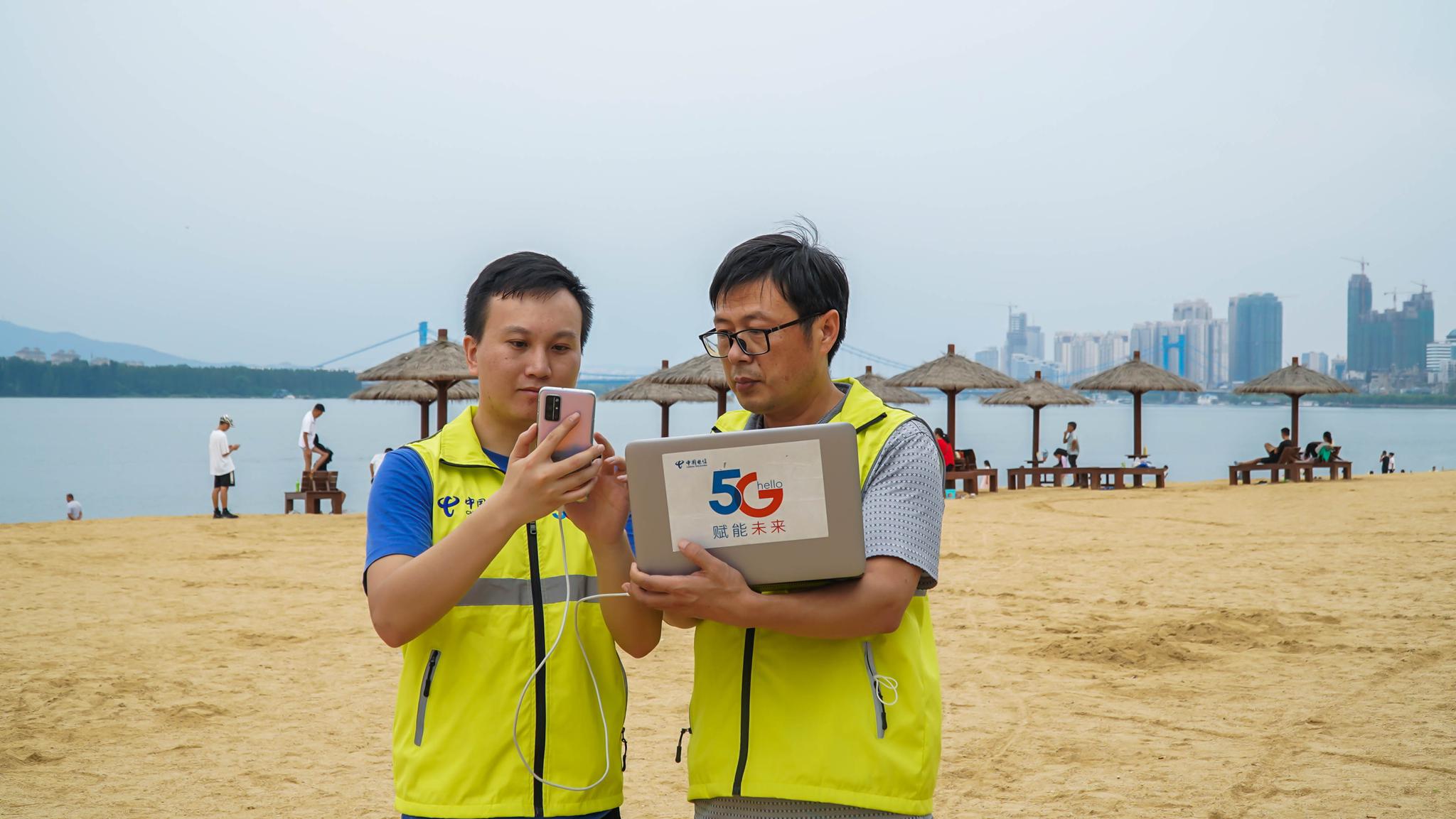 “我們采用的是5G SA(獨立組網(wǎng))網(wǎng)絡(luò),覆蓋區(qū)域的下行體驗速率可達(dá)1Gbps,上行體驗速率可達(dá)300Mbps。簡單地說,下載一部1G大小左右的電影,只需要不到10秒?!敝袊娦畔尻柗止揪W(wǎng)絡(luò)優(yōu)化專家張清成介紹,目前已在魚梁洲建設(shè)5G基站8個,基本實現(xiàn)了環(huán)島景觀帶5G信號全覆蓋。