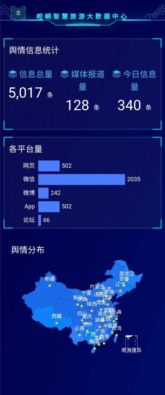 近年來,我市大力發(fā)展“智慧旅游”,全市4A級以上景區(qū)實現(xiàn)與國家文旅部、省文旅廳應(yīng)急指揮平臺對接;3A級旅游景區(qū)、星級賓館飯店實現(xiàn)免費WiFi全覆蓋;建成了樂途旅游網(wǎng)平?jīng)銎放企w驗館,平?jīng)鰯?shù)字圖書館、網(wǎng)上博物館和新媒體宣傳應(yīng)用平臺,崆峒山大景區(qū)創(chuàng)建為省級智慧旅游示范景區(qū),各景區(qū)與攜程、同程、驢媽媽等電商合作,實現(xiàn)線上門票預(yù)訂銷售。目前,我們正在開發(fā)平?jīng)鲋腔勐糜未髷?shù)據(jù)中心,智慧營銷、智慧管理、智慧服務(wù)功能將日臻完善,為游客提供更加智慧化、便捷化的服務(wù)。