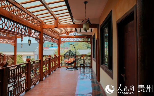 步入位于紅花崗區(qū)深溪鎮(zhèn)龍江村五龍村民組的茍園,處處盡是樹木蔥蘢、花草養(yǎng)眼,青磚青瓦與卯榫結(jié)構(gòu)的房屋顯露黔北民居的建筑特色,橙紅色的木質(zhì)亭臺(tái)、雕花、坡面頂古樸別致。
