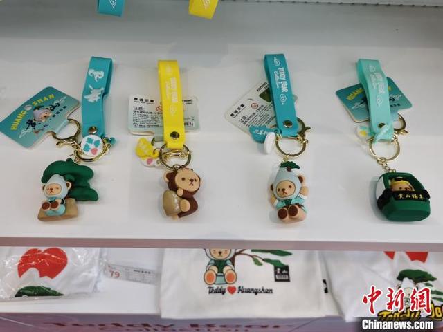 圖為黃山風(fēng)景區(qū)內(nèi)出售的聯(lián)名款泰迪熊系列商品?!〉蠛Q?攝