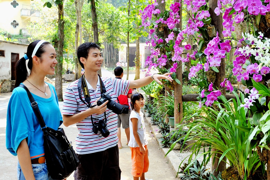 游客在憑祥市蘭花谷觀賞蘭花。龐立堅(jiān)攝(資料圖片)