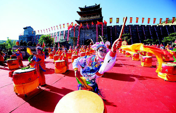青龍古鎮(zhèn)民俗活動(dòng)吸引游客前來旅游。鄧寅明攝