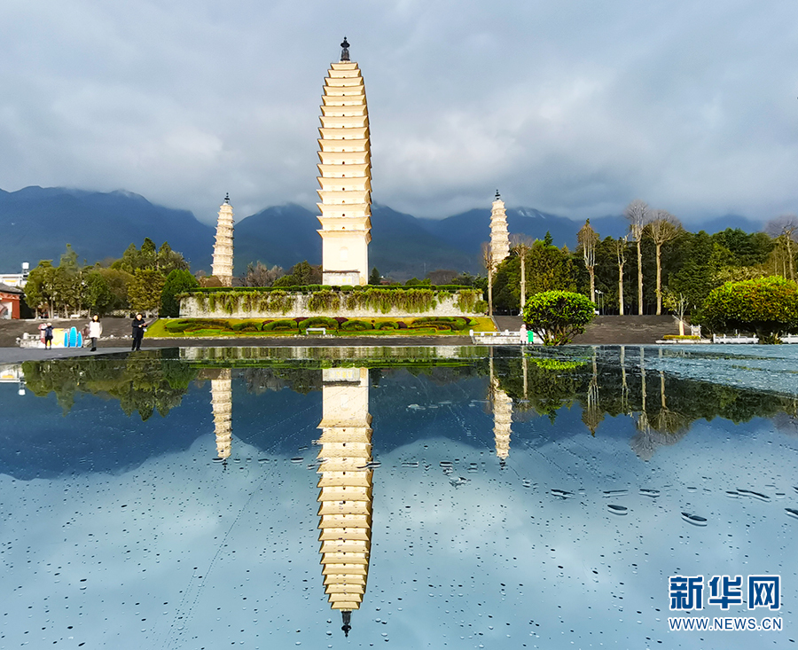 雨后的崇圣寺三塔(1月19日攝)。新華網(wǎng) 馮雨釤 攝