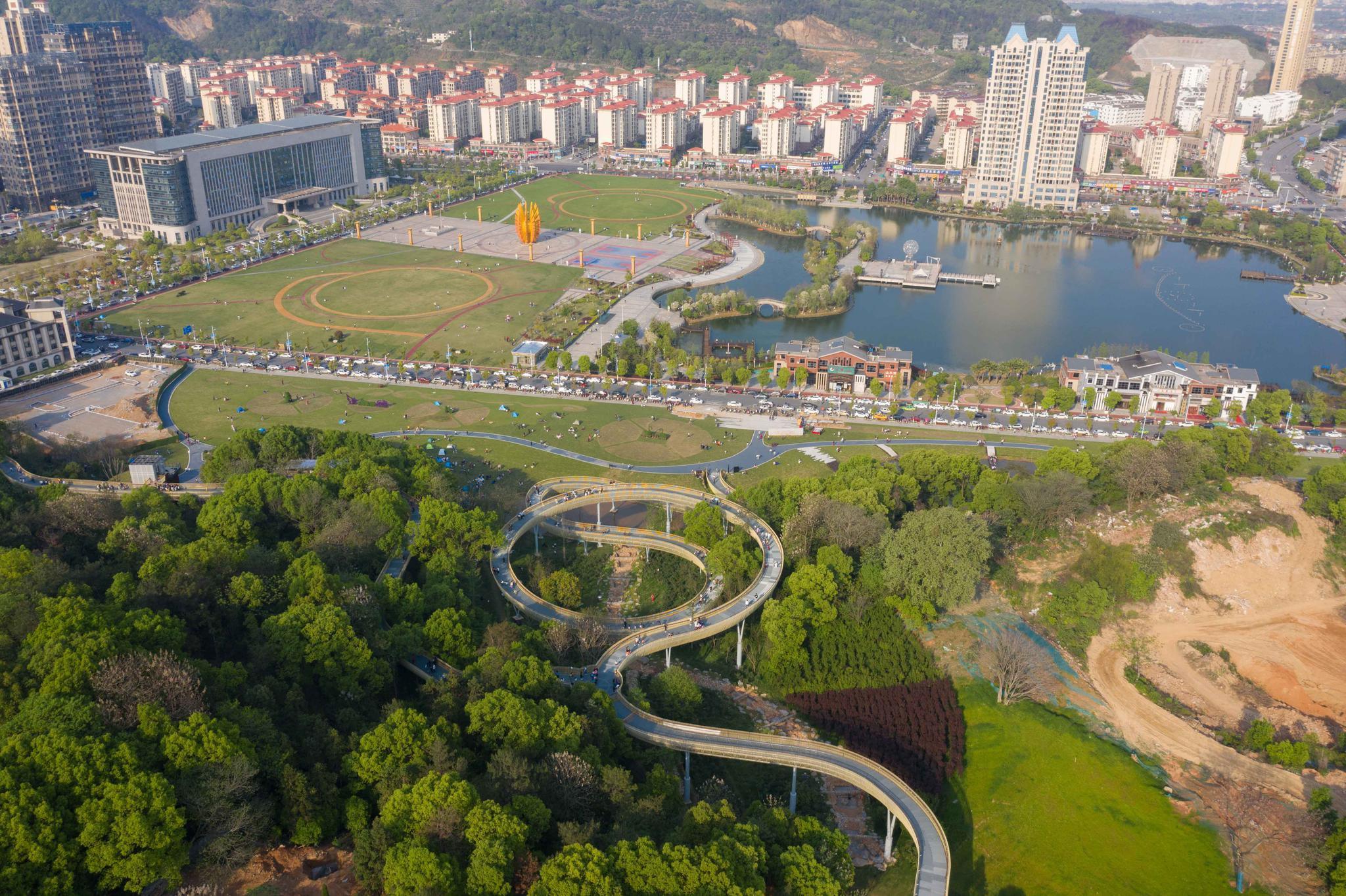 作為我省首個AI公園,磨盤山森林公園巧用現(xiàn)代科技俘獲市民的喜愛。昨日,記者來到位于南昌市新建區(qū)的磨盤山森林公園,在公園的正門口看到,一條鋼架空棧道蜿蜒向上,公園內(nèi),不少游客在舒活筋骨,呼吸大自然新鮮的空氣。
