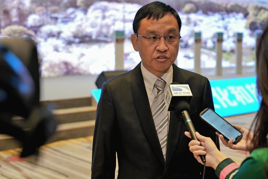 圖為中國(guó)文化傳媒集團(tuán)黨委書(shū)記、董事長(zhǎng)兼《中國(guó)文化報(bào)》社社長(zhǎng)劉強(qiáng)會(huì)后接受媒體采訪