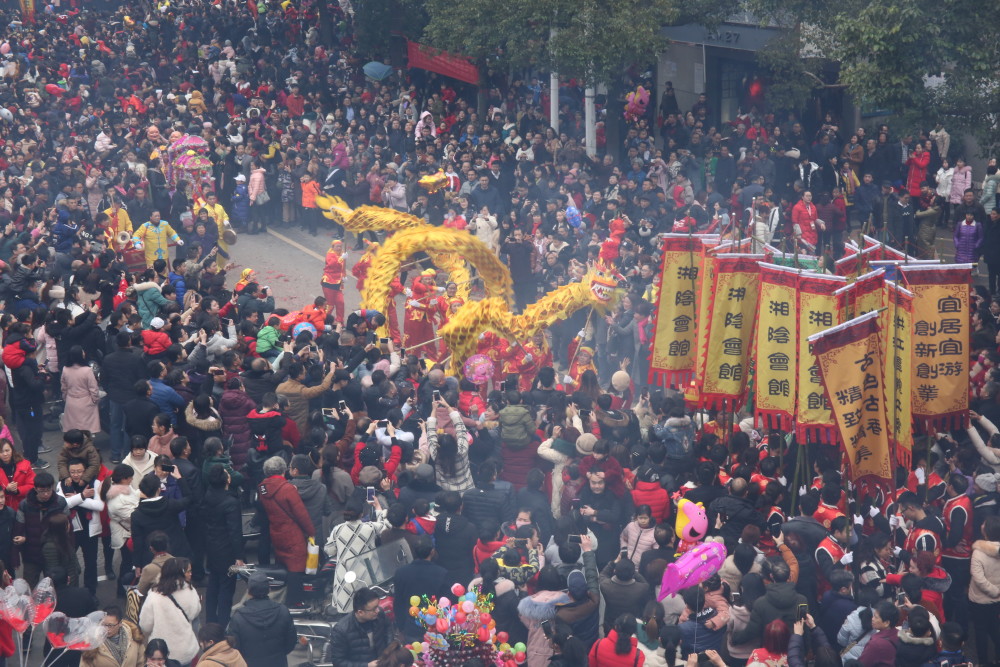 每年正月里舉辦的洪福洪江年特色民俗活動(dòng)中,安徽板凳龍、貴州花臉龍等洪江古商城十大會(huì)館所在地的特色龍集結(jié)洪江,熱鬧非凡。洪江區(qū)文化館館長(zhǎng)舒玉介紹:“100多條龍由我們洪江區(qū)的100多支群眾文藝隊(duì)伍表演,參與群眾上萬(wàn)人。群眾的熱情很高,甚至周邊會(huì)同縣、鶴城區(qū)、洪江市的群眾文藝隊(duì)伍也都自發(fā)來(lái)參加。”舒玉介紹,洪江區(qū)文化館每年都會(huì)結(jié)合大型活動(dòng)需要,有針對(duì)性地為全區(qū)各群眾文藝隊(duì)伍骨干進(jìn)行培訓(xùn),再由參加培訓(xùn)的骨干分別培訓(xùn)自己的隊(duì)伍。