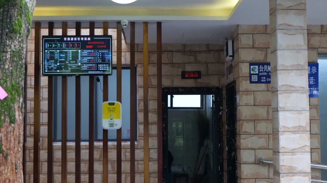 梅嶺時光·親子樂園公廁共設(shè)置了35個蹲位,3個殘疾人坐便,基本可以滿足1500人需要。在廁所門口的液晶顯示屏上顯示有衛(wèi)生間的平面構(gòu)成圖、當(dāng)日天氣情況、使用廁所人數(shù)、環(huán)境質(zhì)量等等,每一個廁位門上的電子屏也會顯示“有人”或“無人”。