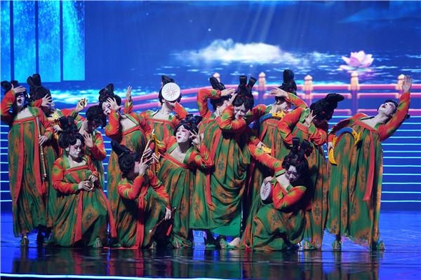 “奇妙游”系列作品為廣大網(wǎng)民呈現(xiàn)了一場(chǎng)場(chǎng)酣暢淋漓的文化大秀。2021年河南春晚上,舞蹈節(jié)目《唐宮夜宴》火遍網(wǎng)絡(luò),20億次的播放量、上千萬(wàn)條彈幕、5次上熱搜——14位舞蹈演員身著融入三彩元素的襦裙,肉嘟嘟的臉上畫著“斜紅”妝容,時(shí)而嚴(yán)肅莊重,時(shí)而嬉笑打鬧,宛如從博物館中“復(fù)活”的“唐宮美人”。