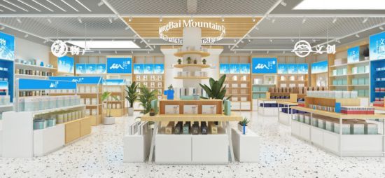 “長白山禮物”首家旗艦店坐落于長白山保護開發(fā)區(qū)的美人松空中廊橋公園,將現(xiàn)代時尚元素和長白山特色文化融會貫通,天池藍與粉雪白構(gòu)成長白山禮物的形象顏色。