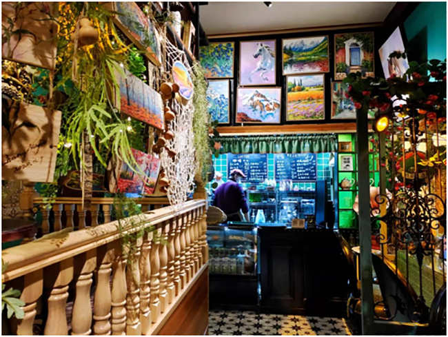 大泥溝頭村青年張友杰在某職業(yè)中專學(xué)習(xí)素描,回村看到新建的畫院之后,經(jīng)過一番考察,他毅然決定選擇退學(xué),跟隨畫院老師學(xué)習(xí)油畫,學(xué)習(xí)5年后,張友杰在村里獨立門戶接單創(chuàng)作,完成了創(chuàng)業(yè)人生的最初積累。2017年,張友杰創(chuàng)辦了自己的油畫咖啡館、藝術(shù)畫廊和民宿項目,嘗試將油畫創(chuàng)作和日常生活相結(jié)合。如今,他的咖啡館已成為網(wǎng)紅打卡地,一條抖音的點擊量就達到3.5萬人次。