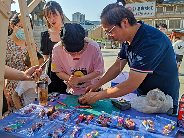 一個(gè)是面塑作品,一個(gè)是版畫藝術(shù);一位是非遺傳承人,一位是21歲的在校大學(xué)生。不久前,在陜西西安大唐市金市廣場(chǎng)上的西安市非遺項(xiàng)目文創(chuàng)研發(fā)展示活動(dòng)現(xiàn)場(chǎng),一位來自西安美術(shù)學(xué)院多位學(xué)子的作美術(shù)作品受到廣大市民和游客的關(guān)注。所有作品不僅展示了青年畫家對(duì)于非遺的觀察和理解,同樣成為傳統(tǒng)手藝的當(dāng)代宣傳畫,頗具觀賞性及廣告價(jià)值。