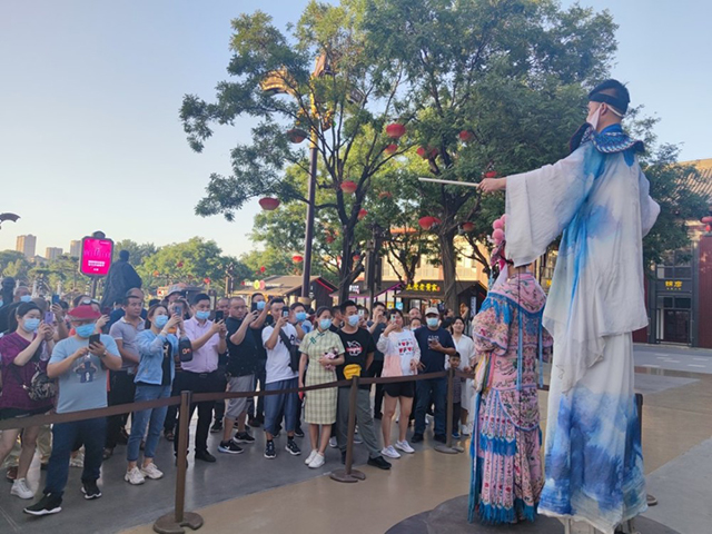 五光十色,夜夜生輝。伴隨著夜幕降臨,西安大唐不夜城迎來了一天中最熱鬧的時(shí)刻,燈光、演出、美食、文創(chuàng),叫好聲、歡呼聲,游客流連忘返在不夜城,也“叫醒”了夜經(jīng)濟(jì)。作為首批全國(guó)示范步行街之一,大唐不夜城用心打造夜景,從石頭人和扮演兵馬俑的網(wǎng)紅,到分布其中的文創(chuàng)店、非遺展位,體現(xiàn)出西安的文化特征,傳播著古城的文化魅力。
