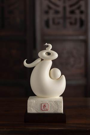 在眾多生肖兔瓷文創(chuàng)產品中,福建省陶瓷藝術大師彭成雄的作品頗具特色。他將生肖文化、陶瓷文化與漢字文化完美融合,設計成一款漢字造型的“中華兔尊”。同時,他還通過瓷雕技藝,將二維的線條、結構以立體的形態(tài)表現(xiàn)出來,更好地展現(xiàn)整體順滑、圓潤、飽滿的視覺效果,并且從造型上呈現(xiàn)一種近似象形文字的趣味感,讓欣賞者產生無限的想象空間。