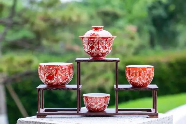 其中,粉彩錯(cuò)金銀虎嘯鳳吟系列,是一件不可多得的佳器名品。整套茶具紋飾以館藏文物唐代金鳳飾件為設(shè)計(jì)靈感。金鳳雙翅展開(kāi),兩足蹬地,振翅欲飛的姿態(tài)生動(dòng)逼真。在中國(guó)古代傳統(tǒng)文化中,鳳凰被視為瑞鳥(niǎo),是鳥(niǎo)中之王。通過(guò)對(duì)金鳳飾件進(jìn)行提取,設(shè)計(jì)出鸞鳥(niǎo)紋,鳳紋羽翼展開(kāi)可合為院徽?qǐng)D形,整體構(gòu)成虎頭紋。茶具沿用藝林堂的粉彩工藝,采用錯(cuò)金銀的呈現(xiàn)效果,不僅讓這只“鳳”更有“活性”,也讓器物更有精細(xì)感,正紅的底色也呈現(xiàn)出“紫禁紅”“中國(guó)紅”的極佳效果,在保留和傳播傳統(tǒng)文化的同時(shí),也符合當(dāng)下的審美需求。