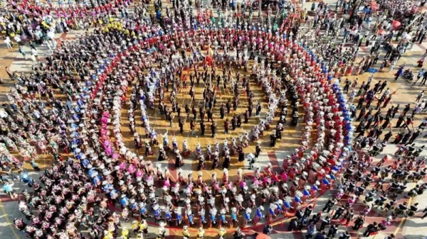以西江千戶苗寨景區(qū)姑媽籃球場為核心,組織開展苗族敬酒歌、游方對唱、偷親表演、蘆笙演奏、團結(jié)舞等節(jié)目,向游客展示西江千戶苗寨獨有的民族歌舞展演和民風(fēng)民俗,讓游客深入體驗苗族的民族風(fēng)情。