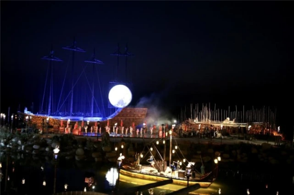 海絲首港打造了全國(guó)首個(gè)交互沉浸式全景演藝,整體建筑加入了東漢風(fēng)貌和異域風(fēng)情的風(fēng)格,最大的亮點(diǎn)是擁有海上絲綢之路的歷史文化IP。目前,其已成功創(chuàng)建國(guó)家4A級(jí)旅游景區(qū),填補(bǔ)了廣西海上絲綢之路文化旅游的空白。