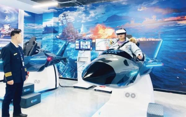 教育基地二樓,只見(jiàn)寬敞明亮的大廳內(nèi)陳列著各種先進(jìn)的模擬設(shè)備,環(huán)繞式的大屏幕,呈現(xiàn)出逼真的飛行場(chǎng)景,讓人仿佛置身于云端之上。這里有裸眼9D飛行影院,160°弧形大屏幕搭配六軸動(dòng)感平臺(tái),可模擬加速、俯沖、搖晃等動(dòng)作,加入吹風(fēng)、噴水、泡泡、雪花等特效,可以帶來(lái)視覺(jué)、聽(tīng)覺(jué)、觸覺(jué)等全方位感官體驗(yàn)。
