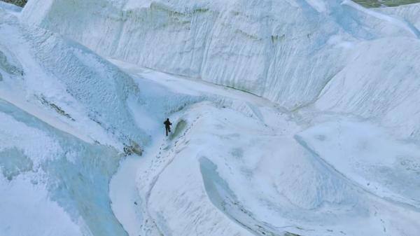 隨著海西蒙古族藏族自治州冬春季旅游系列活動(dòng)拉開(kāi)帷幕,地處柴達(dá)木盆地北緣、祁連山系吐?tīng)柛_(dá)坂山東端的敦德冰川成為眾多越野和攝影愛(ài)好者的詩(shī)與遠(yuǎn)方。敦德冰川又稱敦德冰帽,是西北地區(qū)最大的平頂冰川,面積達(dá)57.07平方公里,其頂部海拔達(dá)5290米。圖為游客拍照。