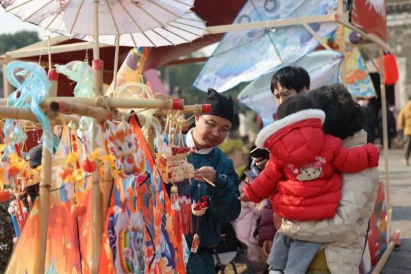 除了民俗巡演外,現(xiàn)場(chǎng)還集結(jié)了一批本地知名餐飲商家、共富工坊、手工藝人及農(nóng)戶,辦起了年貨集市。他們攜大頭菜烤年糕、缸鴨狗湯圓、灰汁團(tuán)、米饅頭、凍米糖等本地特色美食,定制的“大哈普”紅包、集章卡、通關(guān)文牒等特色文創(chuàng)以及“垃圾分類套大鵝”“冬至拋拋樂”等互動(dòng)游戲,等待各地游客的探索、光臨。