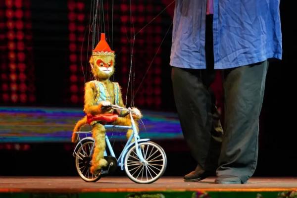還有許多巧思藏在細節(jié)中。《猴趣》演員沈蘇革舉起手中的猴子木偶說:“現(xiàn)在的舞臺較大,為了讓更多觀眾看到木偶頭部細節(jié)表情變化,需要不斷改良木偶細節(jié)。這個猴子木偶頭的五官更加突出、嘴巴和眼睛的開合幅度更大、制作猴毛的材料更長、質(zhì)感也更好,舞臺上的表現(xiàn)力更強。”