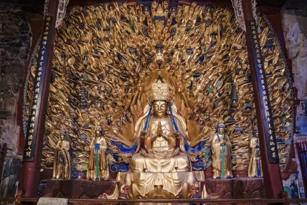 大足石刻是大足區(qū)境內(nèi)所有石刻造像的總稱(chēng),迄今公布為文物保護(hù)單位的石刻多達(dá)75處,造像5萬(wàn)余尊。與敦煌莫高窟、云岡石窟、龍門(mén)石窟齊名,是享譽(yù)世界文化遺產(chǎn)。它不僅是中國(guó)石窟藝術(shù)的重要代表,更是世界文化寶庫(kù)中的瑰寶。1999年,大足石刻被聯(lián)合國(guó)教科文組織列入《世界遺產(chǎn)名錄》。