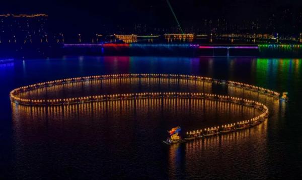 2025年9月14日晚,在第三屆張家界旅游發(fā)展大會(huì)前夕,慈利縣放馬洲公園的澧水河畔上演了一場(chǎng)“活態(tài)非遺+科技光影”的盛宴。那條長(zhǎng)達(dá)500米、由66根竹筏串聯(lián)而成的板板龍燈,結(jié)合燈光秀、無人機(jī)表演和水幕等現(xiàn)代科技元素,打造出“水陸空”三維沉浸式夜游體驗(yàn)。